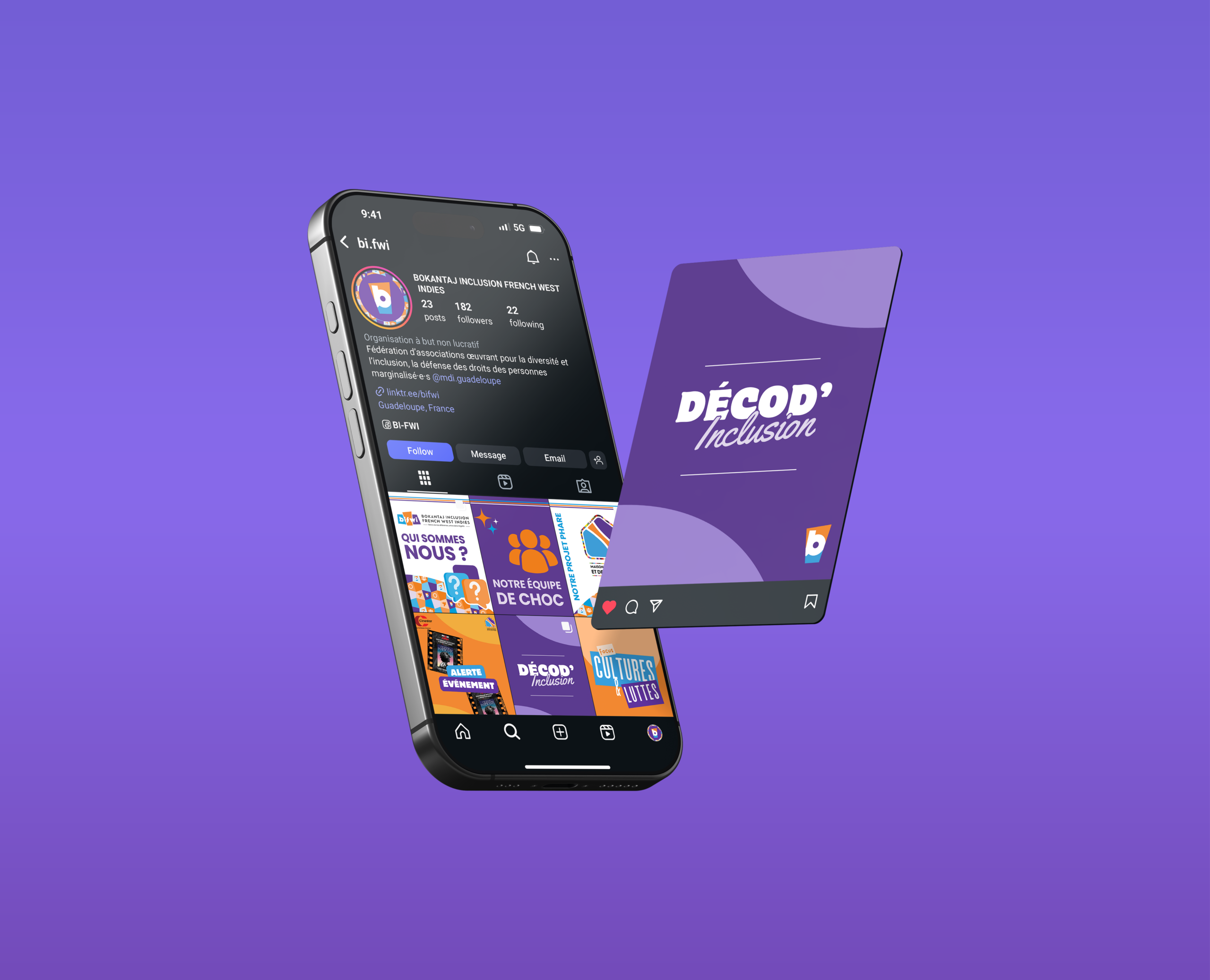 Je crée l’identité visuelle de votre projet : le logo, les couleurs, les typographies et les règles graphiques qui vont servir de base à toute votre communication.